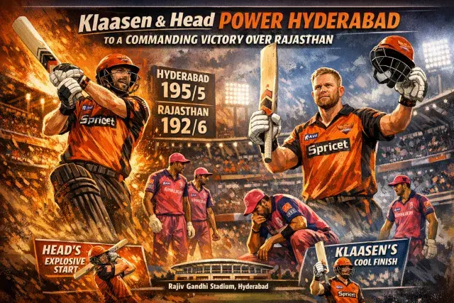 A disciplined bowling effort followed by an explosive pursuit sealed a convincing win for Sunrisers Hyderabad against Rajasthan Royals at the Rajiv Gandhi International Cricket Stadium in Hyderabad. Rajasthan's 192/6 proved insufficient as Hyderabad overhauled the total in 18.5 overs, finishing at 195/5, with Heinrich Klaasen's composed closing act proving decisive after Travis Head's blistering start had set the foundation.
